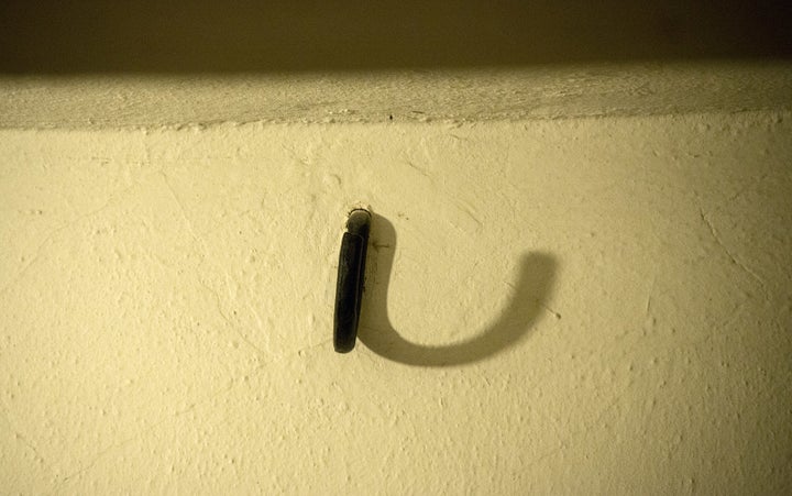A hook projects its shadow on the wall in the "Strangling Room," called Leichenkeller (corpse cellar) by the Nazis, in the basement of the crematorium in Buchenwald concentration camp near Weimar, Germany, where 1,100 prisoners were garroted and hanged by the SS. The camp, established by the Nazis in 1937, was one of the first and the largest on German soil, housing some 250,000 prisoners between 1937 and 1945. 65,000 prisoners were killed or died during this period.