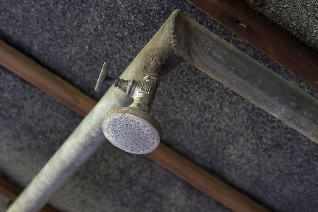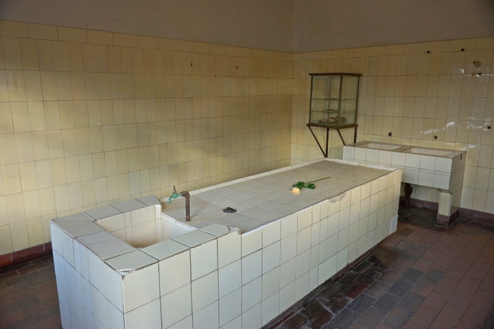 The interior of the gas chambers at the Auschwitz-Birkenau Memorial and Museum.