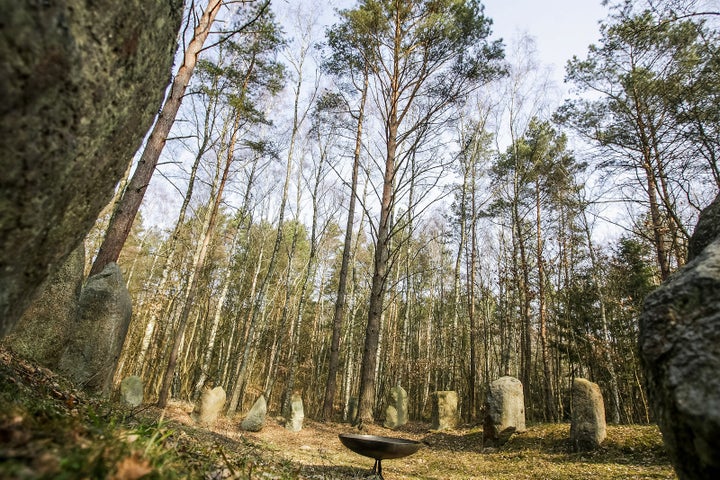 An open-air mass cremation place in former Nazi German concentration camp Stutthof in Sztutowo, Poland. Stutthof was the first Nazi concentration camp built outside of Germany. Completed in September 1939, it was located in a secluded, wet, and wooded area west of the small town of Sztutowo in the Freie Stadt Danzig area.