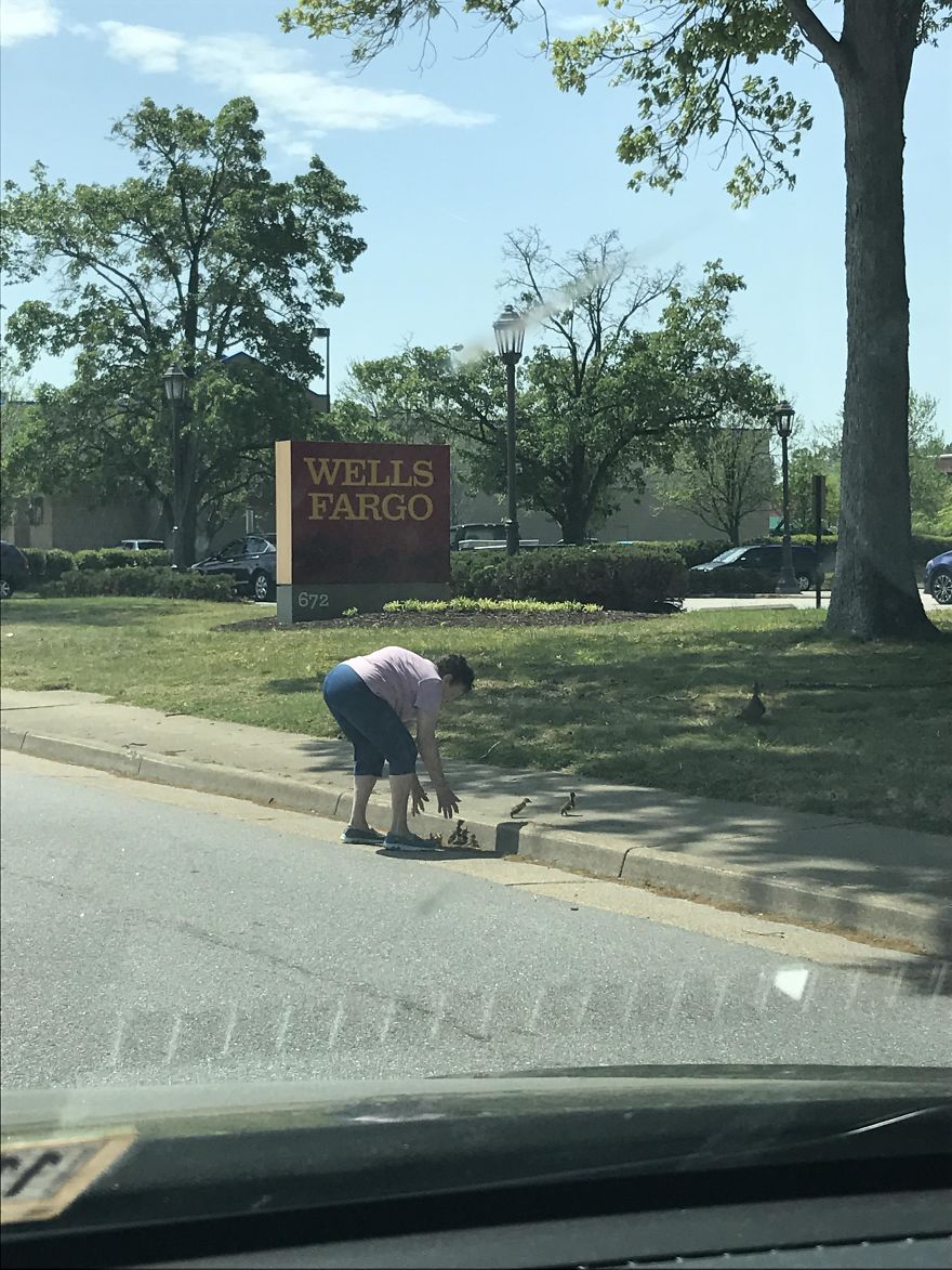 Not All Heroes Wear Capes. This Lady Stopped Traffic, Walked Mama Duck And Baby Ducks Across Three Lanes Of Traffic, And Even Helped The Little Ones Onto The Curb.