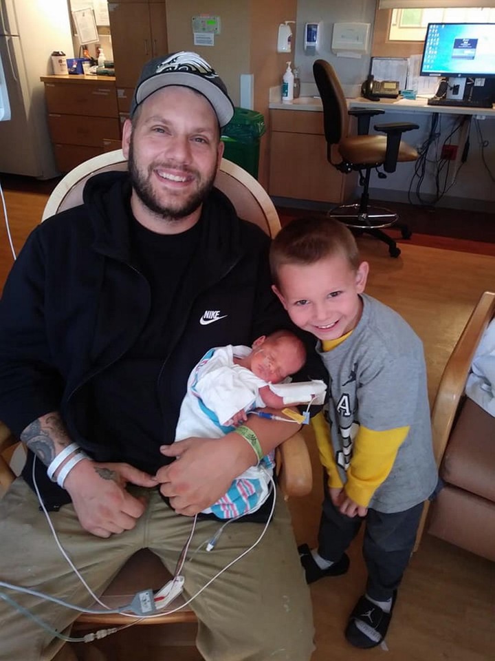 When the twins were finally discharged from the hospital two months later, Michael was also there wearing a superhero t-shirt and standing proudly with his now-healthier twin brothers.