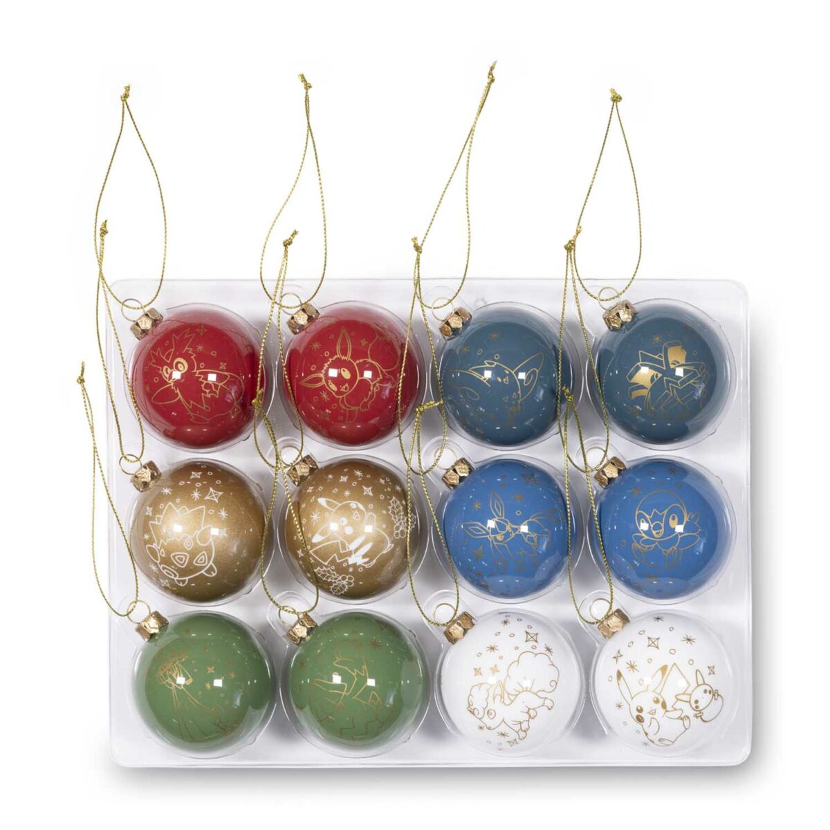 Pokémon plush holding Christmas ornaments to decorate with.